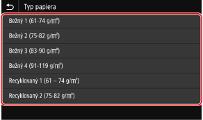 Vyberte typ papiera, ktorý chcete zaregistrovať.