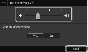 Posunom jazdca doľava alebo doprava upravte nastavenie hlasitosti a stlačte tlačidlo [Použiť].