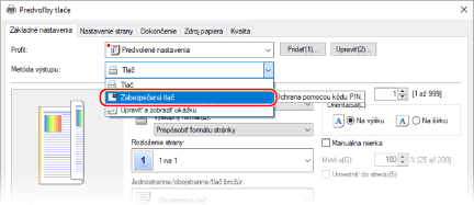 V časti [Metóda výstupu] vyberte položku [Zabezpečená tlač].