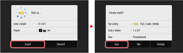 Ak sa zobrazí obrazovka tlače, kliknite na položku [Zrušiť].