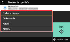 Vyberte nastavenie skenovania a stlačte tlačidlo [Štart].