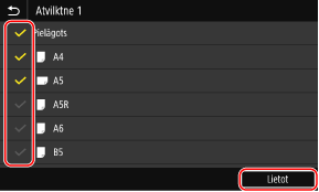 Notīriet paslēpjamo papīra formātu izvēles rūtiņas un noklikšķiniet uz [Lietot].