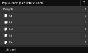 Varat mainīt ekrānā parādīto papīra formātu 1. darbības laikā. Neizmantoto papīra formātu paslēpšana
