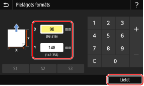 Ievadiet vērtības laukā [X] un [Y] un nospiediet [Lietot].
