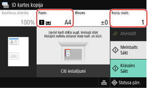 Lai kopētu ID kartes aizmuguri melnbaltā konfigurācijā, nospiediet [Sākt Melnbalts]. Lai iegūtu krāsu kopijas, nospiediet [Sākt Krāsains].