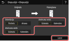 [Divpusējā druka].Tiek parādīts ekrāns [Divpusēja].