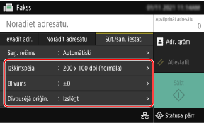 Cilnē [Sūt./saņ. iestat.] konfigurējiet sākotnējos skenēšanas iestatījumus.