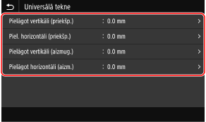 Norādiet regulēšanas platumu, izvēloties pozitīvu vērtību, lai regulētu papīru virzienā pa labi, vai negatīvu vērtību, lai regulētu to virzienā pa kreisi.