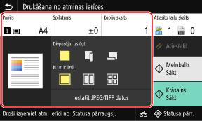 Vadības panelī nospiediet [Druk. no atm. ier.] ekrānā [Sākums].