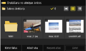 Lai parādītu failus un mapes USB atmiņas ierīcē, ievietojiet USB atmiņas ierīci iekārtā un [Sākums] ekrānā piespiediet [Druk. no atm. ier.].