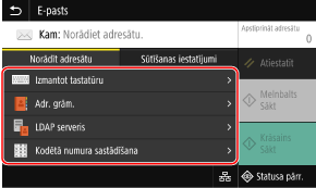 Izmantojiet [Adr. grām.] vai [Kodētā numura sastādīšana], lai norādītu Cc un Bcc adresātus.