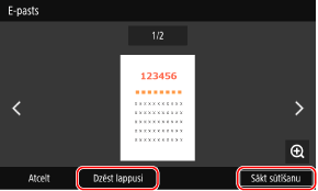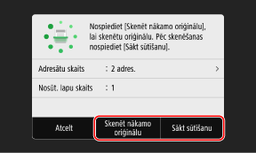 Kad visi dokumenti ir noskenēti, nospiediet [Sākt sūtīšanu] vai [Priekšsk. un sūt.].