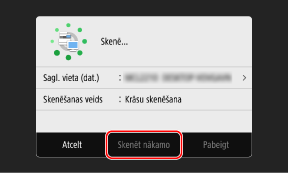 Lai turpinātu skenēt oriģinālus, novietojiet tos uz planšetes stikla un nospiediet [Skenēt nākamo].