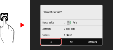 Lai atceltu skenēšanas operāciju, izpildiet ekrānā rādītās instrukcijas.