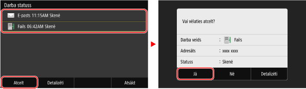 Ja tiek parādīts darbu saraksta ekrāns, atlasiet atceļamo darbu un nospiediet [Atcelt]