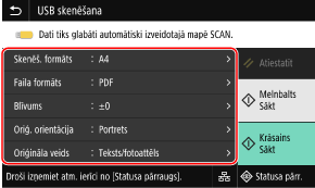 Ja parādās atmiņas datu nesēja darbības panelis, piespiediet [USB skenēšana], un pārejiet pie 5. darbības.