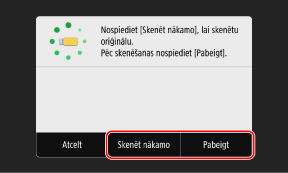 Lai turpinātu skenēt oriģinālus, novietojiet tos uz planšetes stikla un nospiediet [Skenēt nākamo].