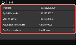 Varat skatīt iekārtai iestatīto IP adreses iestatījumu, piemēram, IPv4 adresi un IPv6 adresi.