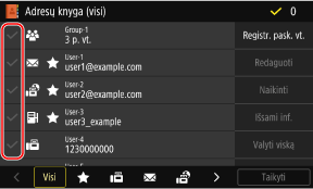 Jei adresatas adresų knygelėje nurodytas su „Parankiniais parametrais“, redagavimo arba ištrynimo veiksmas bus pritaikytas ir „Parankiniams parametrams“. Parankinių parametrų registravimas ir iškvietimas