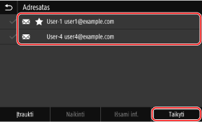 Patikrinkite, ar adresatai, kuriuos norite įtraukti į grupę, yra teisingi, tada paspauskite [Taikyti].