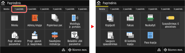 Palieskite ekraną ir brūkštelėkite piršto galiuku. Ekranas judės ta kryptimi, kuria brūkštelėjote pirštu. Pavyzdžiui, ekranas [Pagrindinis] pereis į skirtuką ta kryptimi, kuria brūkštelėjote pirštu.