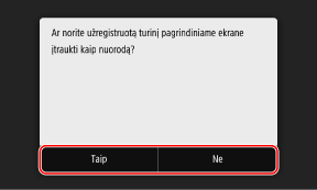 Pasirinkus [Ne], parankinis parametras bus užregistruotas, bet nuorodos mygtukas nebus įtrauktas. Nuorodos mygtuką į ekraną [Pagrindinis] galite įtraukti vėliau.