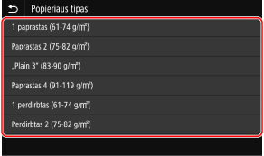 Pasirinkite popieriaus tipą, kuri norite užregistruoti.
