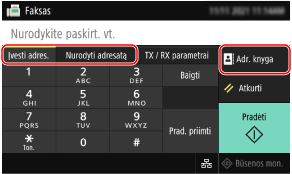 Adresatą nurodykite skirtuke [Įvesti adres.], skirtuke [Nurodyti adresatą] arba [Adr. knyga].