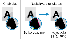 * Toks koregavimas bus pritaikytas, jei nuskaitymui ar kopijavimui nustatytas kitoks originalo tipas nei [Išspausdintas vaizdas] ar [Nuotrauka].