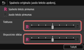 Dalyje [Tiektuvas] arba [Ekspozicinis stiklas] atlikite koregavimą pirmenybę teikdami spalvoto arba juodo teksto atkūrimui.