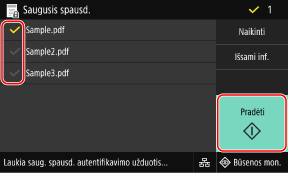 Jei aukščiau pateiktame 2 veiksme pasirinksite kelis saugiųjų duomenų failus, bus atspausdinti tik saugieji duomenys, atitinkantys įvestą PIN kodą arba slaptažodį.