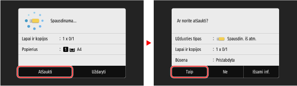 Norėdami atšaukti spausdinimą, vadovaukitės ekrane pateikiamais nurodymais.