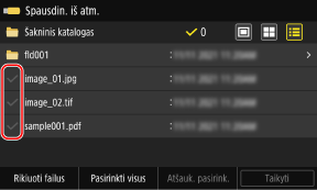 Pasirinkti failų, kuriuos norite spausdinti, žymės laukelius.
