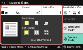 Kad būtų spausdinama nespalvotai, paspauskite [Pradėti Nespalvotai]. Kad būtų spausdinama spalvotai, paspauskite [Pradėti Spalvotai].