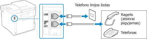 Prijungdami telefoną su fakso funkcija, būtinai išjunkite telefone automatinio fakso priėmimo parametrą.
