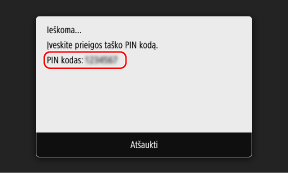 Kai pasirodys šis ekranas, WPS PIN kodą belaidžiam LAN maršrutizatoriui turite užregistruoti per 10 minučių.