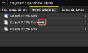 Jei spausdinti negalima, nuskaitytų duomenų arba faksogramos negalima siųsti arba gauti arba įvyksta kitokia klaida, ataskaitoje arba užduočių žurnale rodomas klaidos kodas (trijų skaičių numeris, prasidedantis „#“).