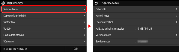 Kui puudutate üksuse nime või nuppu, saab selle valida. Valitud kuva avatakse või valitud funktsioon teostatakse.