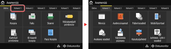 Puudutage ekraani ja libistage sõrmeotsa. Ekraan liigub sõrmega libistamise suunas. Näiteks kuva [Avamenüü] liigub sõrmega libistamise suunas asuvale vahekaardile.