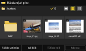 Kõigi kuvatud failide valimiseks vajutage kuva allosas [Vali kõik]. Kui mäluseadmes on nii PDF- kui ka pildifaile (JPEG või TIFF), avatakse failitüübi valimise kuva. Valige sellel kuval failitüüp, mida soovite printida.