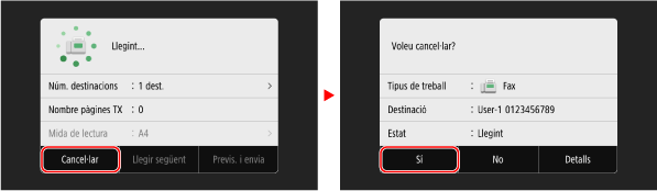 Podeu cancel·lar l'enviament d'un fax seguint les instruccions de la pantalla.