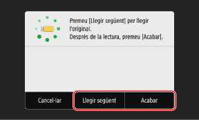 Després de col·locar l'original al vidre de la platina i llegir-lo en format PDF o TIFF, apareixerà la pantalla per llegir originals addicionals.