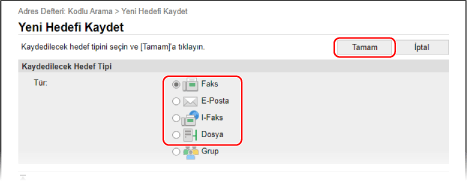 Adres Defteri'ne Grup Kaydetme (Uzak Kullanıcı Arabirimi)