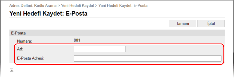 E-Posta Adreslerini (E-Posta, I-Faks) Kaydederken