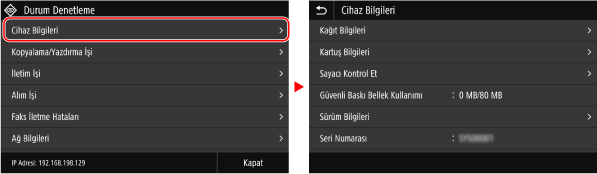 Bir öğe adına veya düğmeye dokunduğunuzda, öğe seçilebilir. Seçilen ekran görüntülenir veya seçilen işlev gerçekleştirilir.