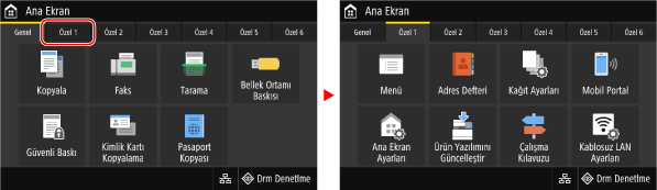 Ekrana dokunun ve parmağınızın ucuyla kaydırın. Ekran, parmağınızı kaydırdığınız yönde hareket eder. Örneğin [Ana Ekran], parmağınızı kaydırdığınız yöndeki sekmeye taşınır.