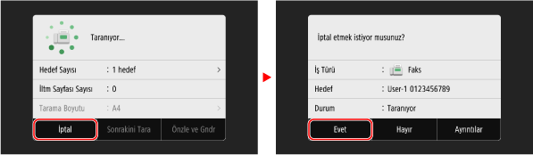 Ekrandaki talimatları takip ederek bir faksın gönderilmesini iptal edebilirsiniz.