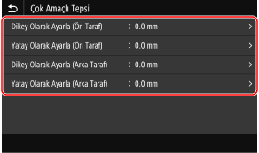 Kağıdın üzerinde sağa doğru ayarlamak için pozitif bir değer veya sola doğru ayarlamak için negatif bir değer seçerek ayarlama genişliğini belirtin.