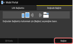 Makineye Bağlı Bir Mobil Cihazı Kontrol EtmeMakineye Doğrudan Bağlantı ile bağlanan mobil cihazın bilgilerini, [Doğrudn Bağlntı] sekmesinde [Bağlantı Bilgileri] öğesine basarak görüntüleyebilirsiniz.