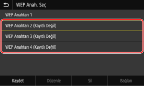 Kaydedilmemiş bir şifreleme anahtarı seçin ve [Kaydet] öğesine basın.